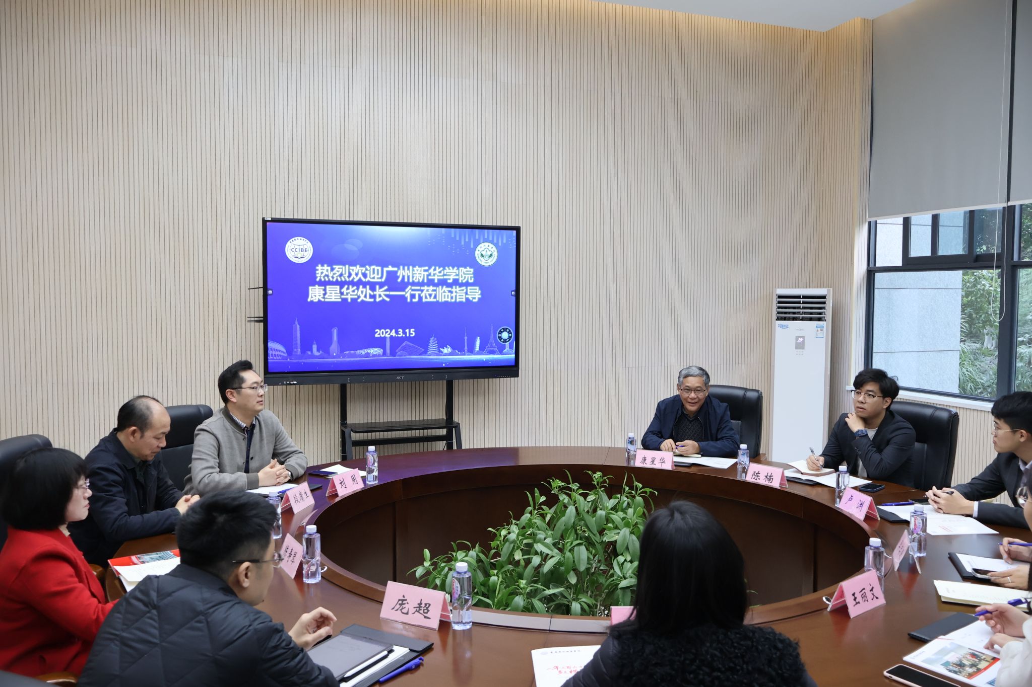 3月15日,广州新华学院外事处处长康星华一行来校交流访问。文学与创意传播学院常务副院长段庸生、副院长陈寿琴,国际交流合作处处长刘用等出席了会议。