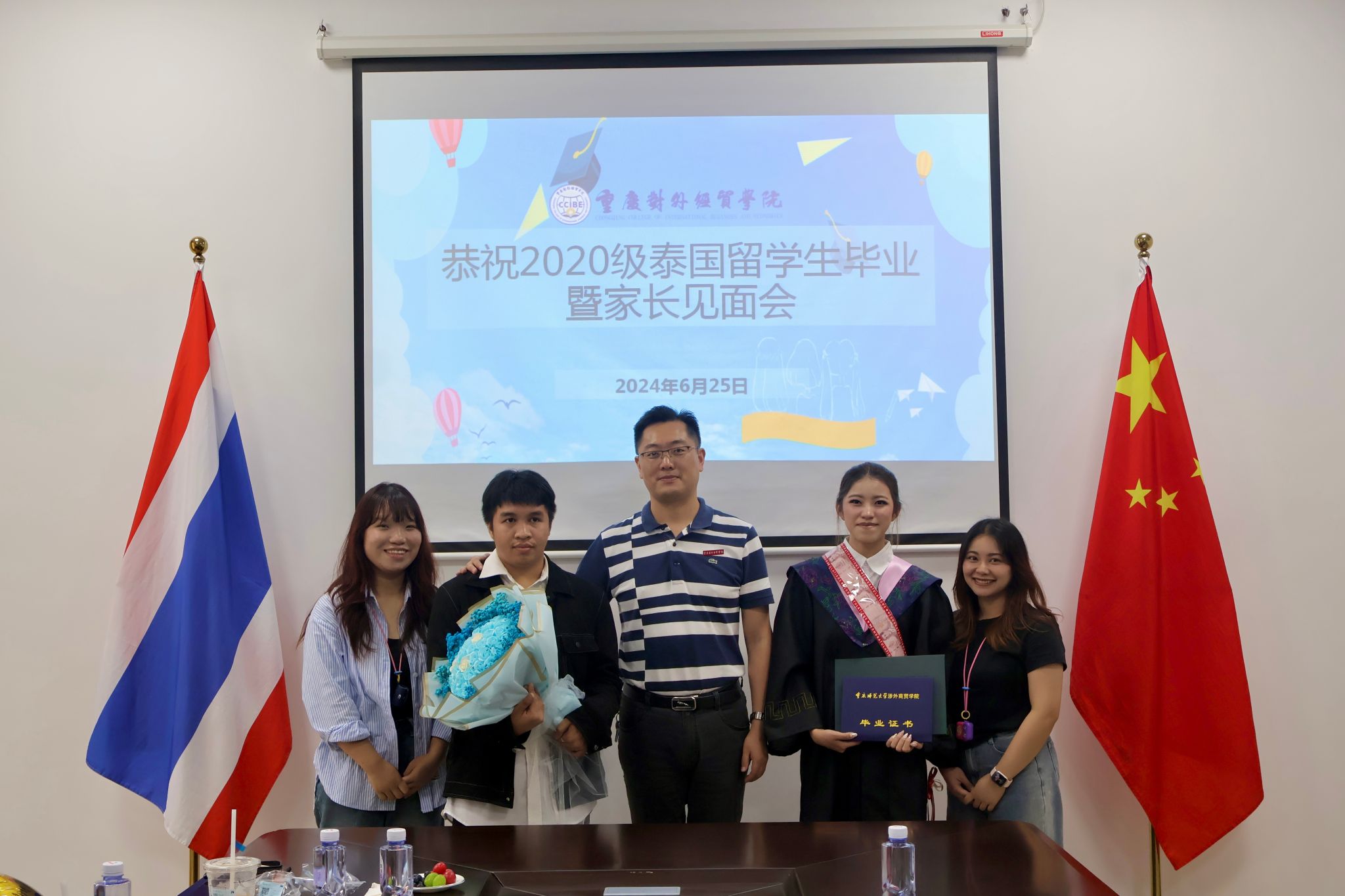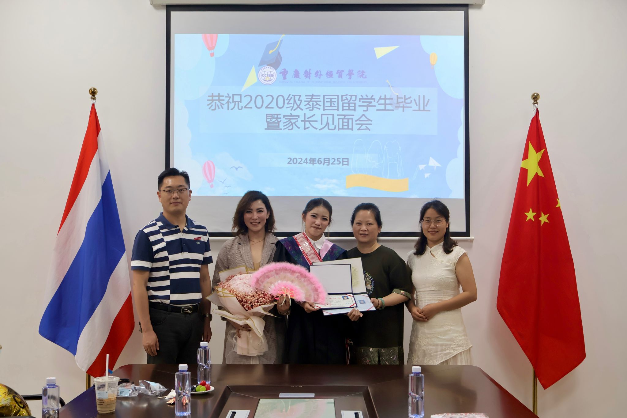 刘用对各位家长的到来表示欢迎,对同学们顺利毕业表示祝贺;他希望同学们继续加强学习、增进对中国的了解,为中泰的友好交往做出自己的贡献,同时也欢迎大家常回母校。