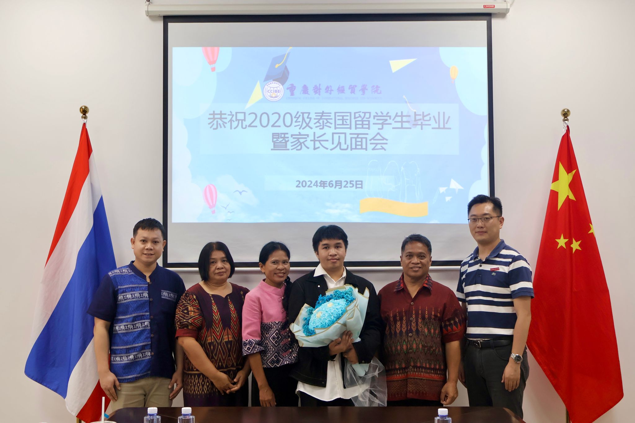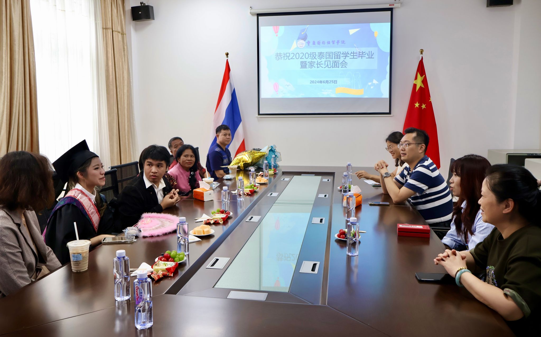6月25日,来校参加毕业典礼的2020级留学生何婉玉、李楠等的家长到访国际学院,学院院长刘用、副院长田原及相关工作人员进行了会见。
